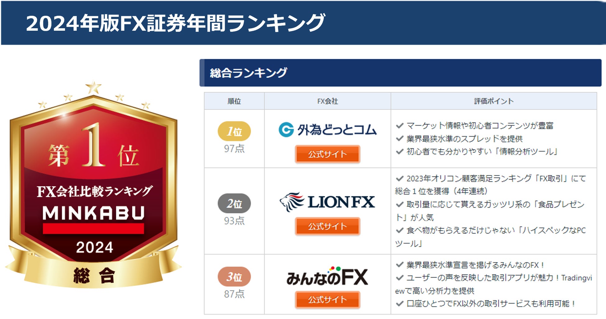 2024年 ネット証券・FX会社の年間ランキングを発表「MINKABU」ネット証券・FX会社比較より一挙公開