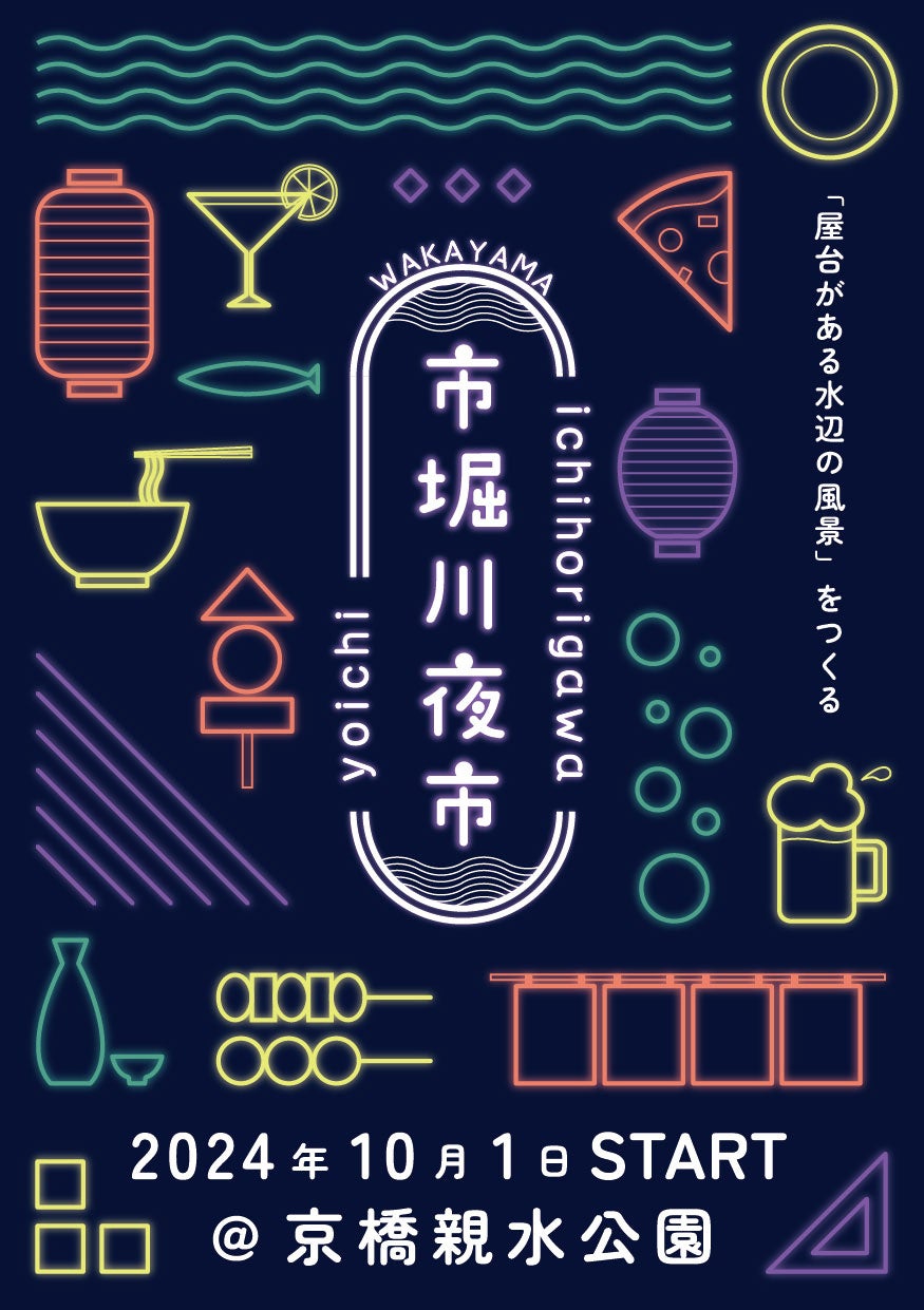 水辺空間の利用促進及びまちなかの回遊性向上を目指す「市堀川かわまちづくり」の推進に向けた取組と連携して、株式会社紀州まちづくり舎により市堀川夜市が開催されます。