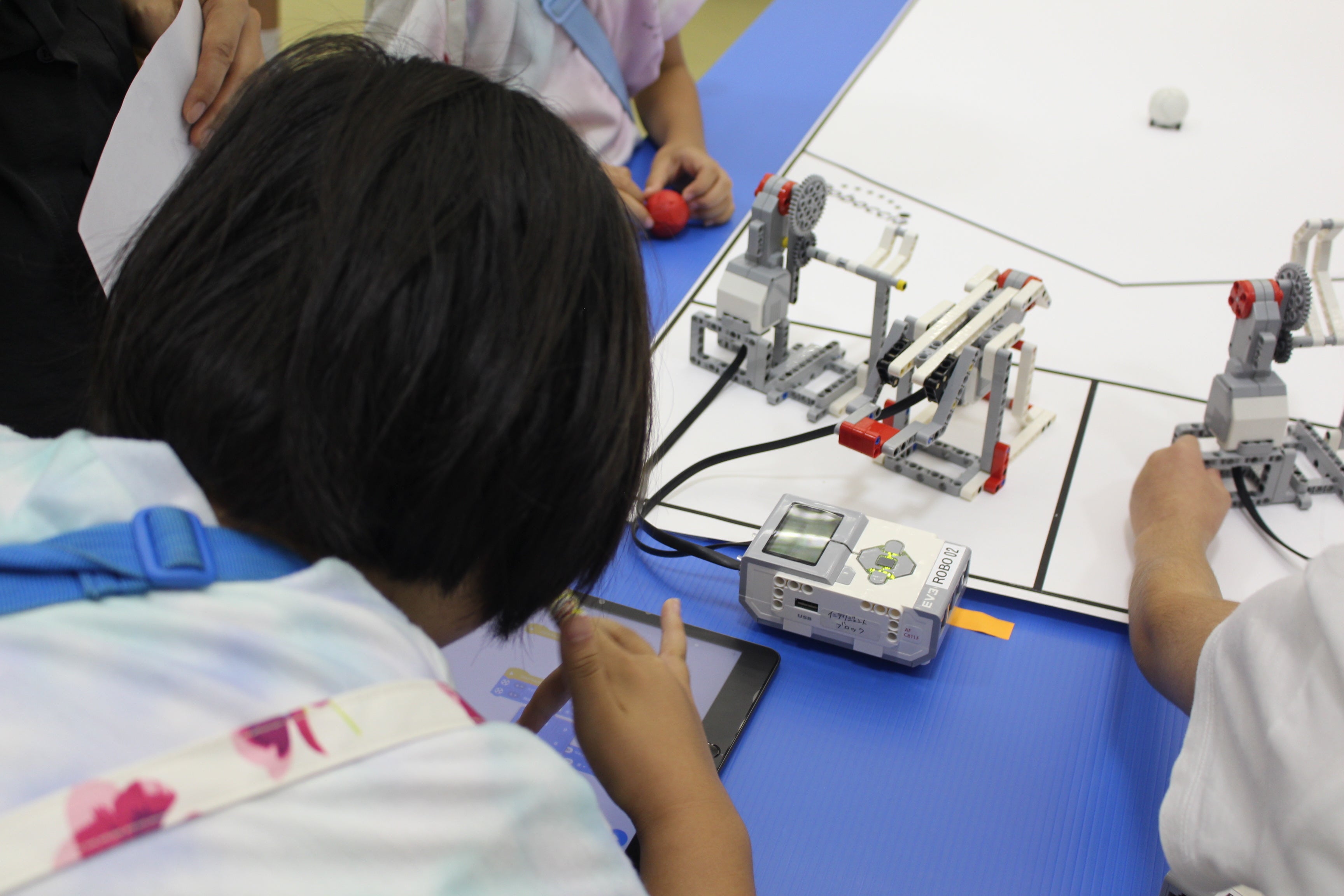 会場では、子どもたちが「Roboccia®(ロボッチャ)」で3つのミッションをクリアするゲームを楽しみました。参加者は、ロボットがボールを投げるスピードや角度を調整し、狙った場所にボールを投げる動作を通してプログラミングの面白さを体験しました。