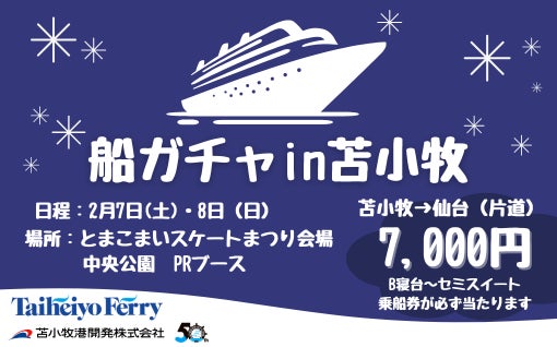 名古屋・仙台・苫小牧間でフェリーを運航する太平洋フェリー株式会社(本社:名古屋市中村区、名鉄グループ)は2026年2月7日(土)・8日(日)に北海道苫小牧市で開催される「第60回 とまこまいスケートまつり」に苫小牧港開発株式会社と共同出展し、『船ガチャin苫小牧』を開催します。