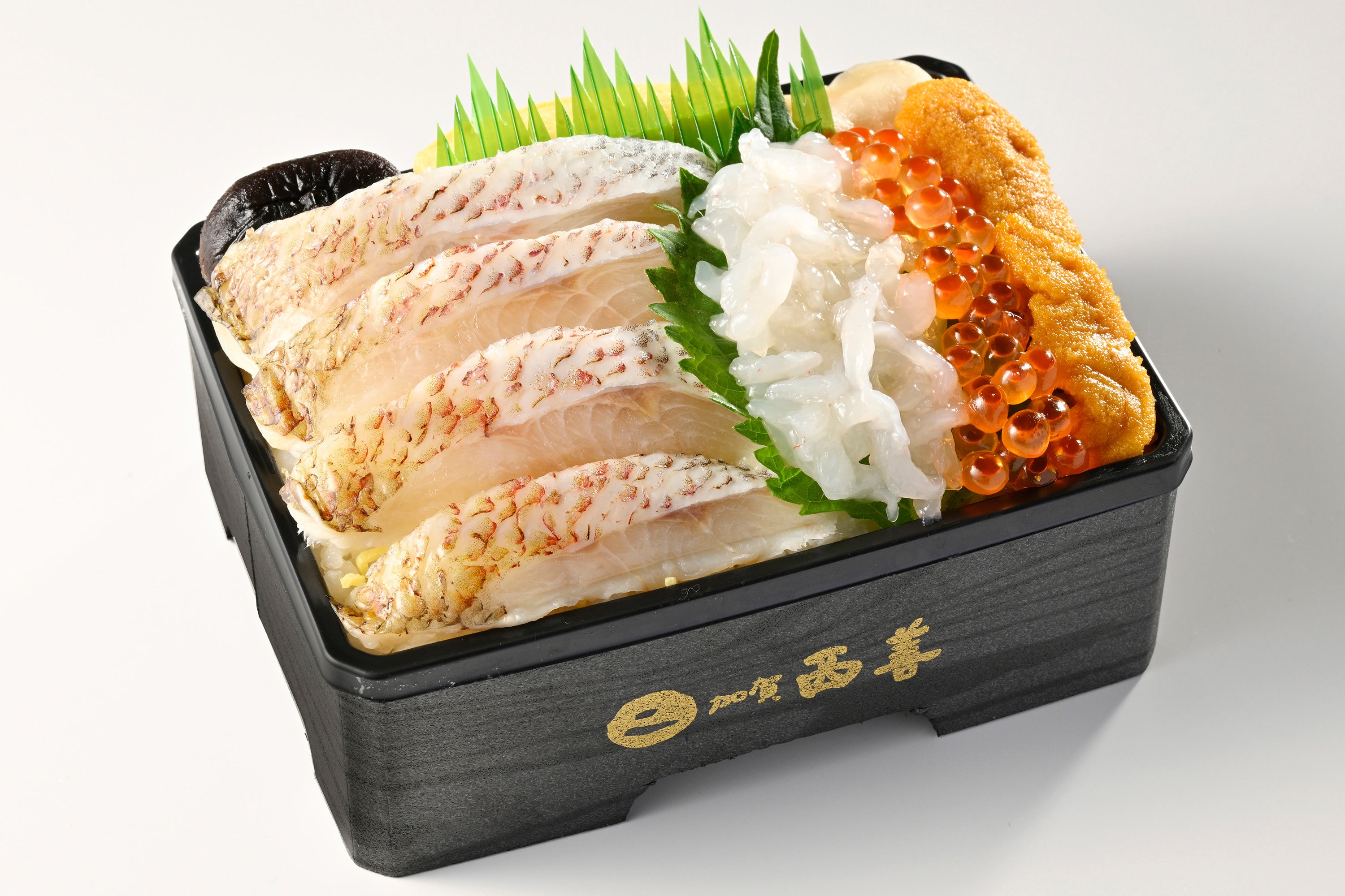 高級食材「のどぐろ・白えび・うに」を使った贅沢弁当。のどぐろのボリュームは、まさに❝増しまっし❞。
