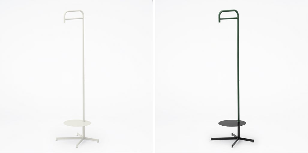 シンプルなデザインで色遊びが楽しめ、下部の棚にはバッグや小物をサッと置ける使い勝手の良さと、省スペース設計が特徴。ベースとネックを自由に組み合わせてカラーのカスタマイズが可能です。