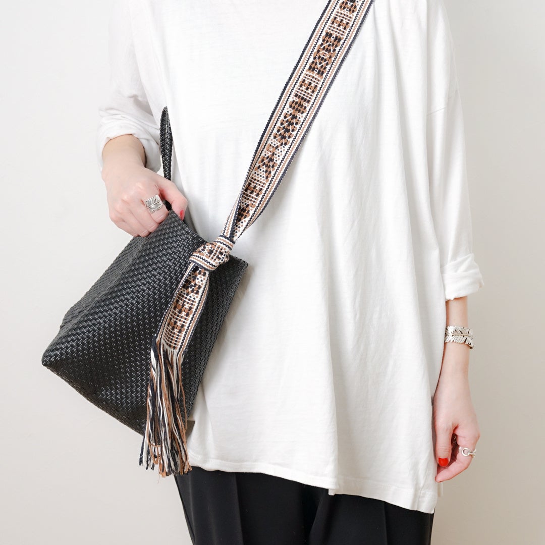 Letraでは、現地でベルトとして織られているこの魅力的なアイテムを日本のコーディネートに取り入れられるように、メルカドバッグのショルダーベルトにしました。