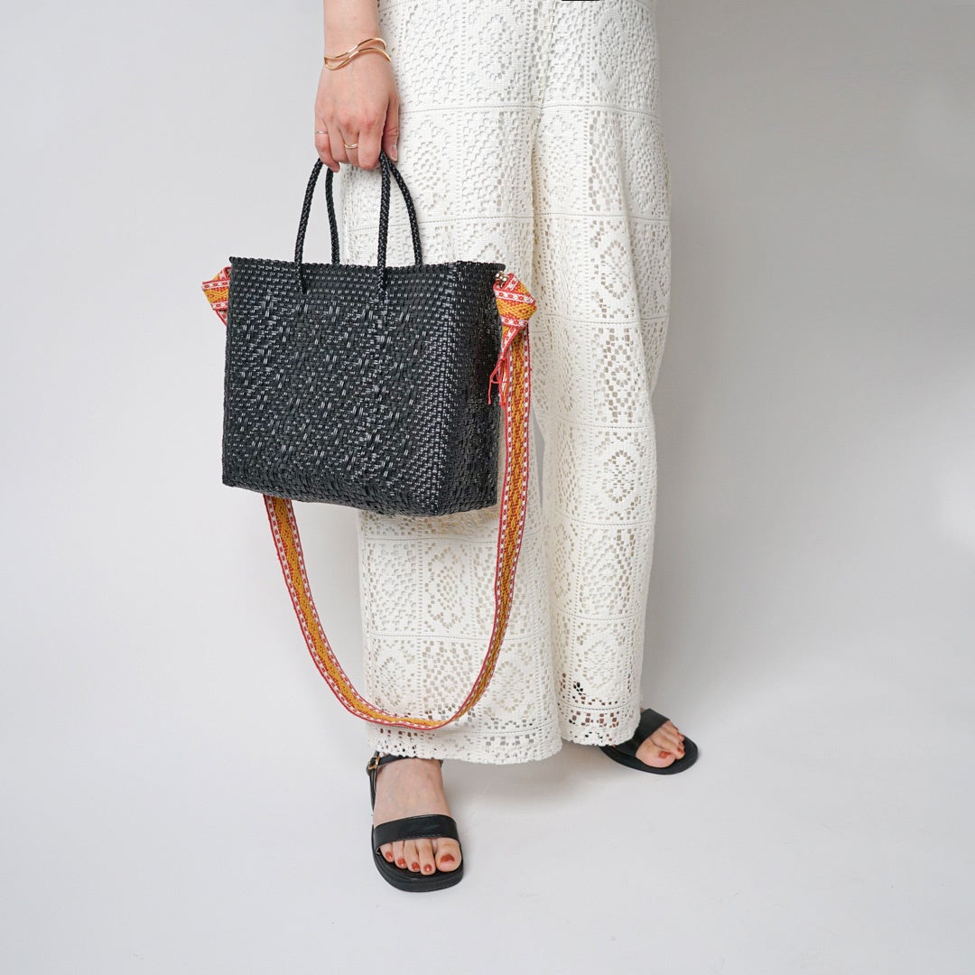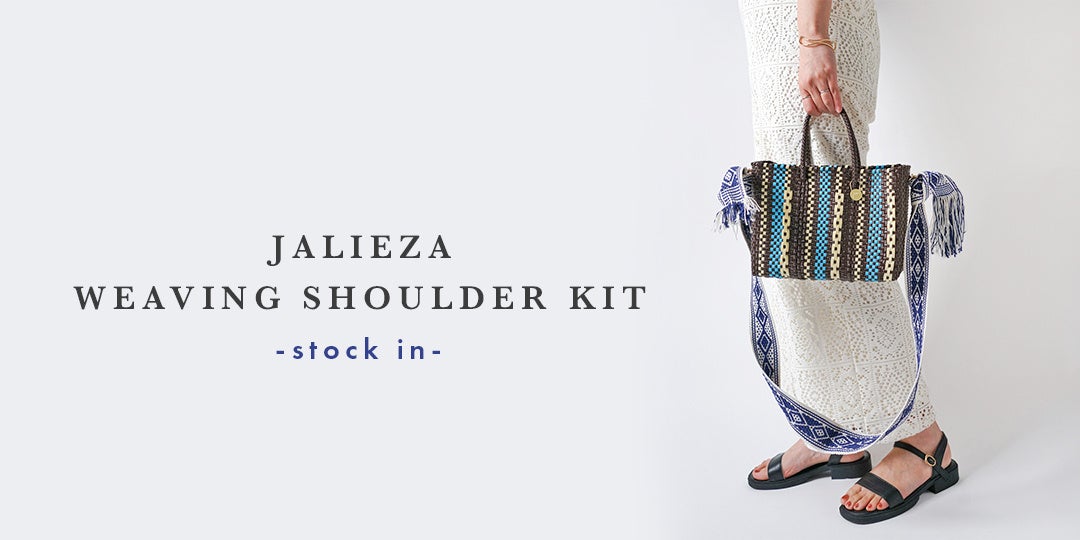 メルカドバッグの付属品としてメキシコの伝統工芸技術を使用して織られたショルダーキットが入荷します。カスタマイズしてオリジナルのメルカドバッグをお楽しみいただけます。