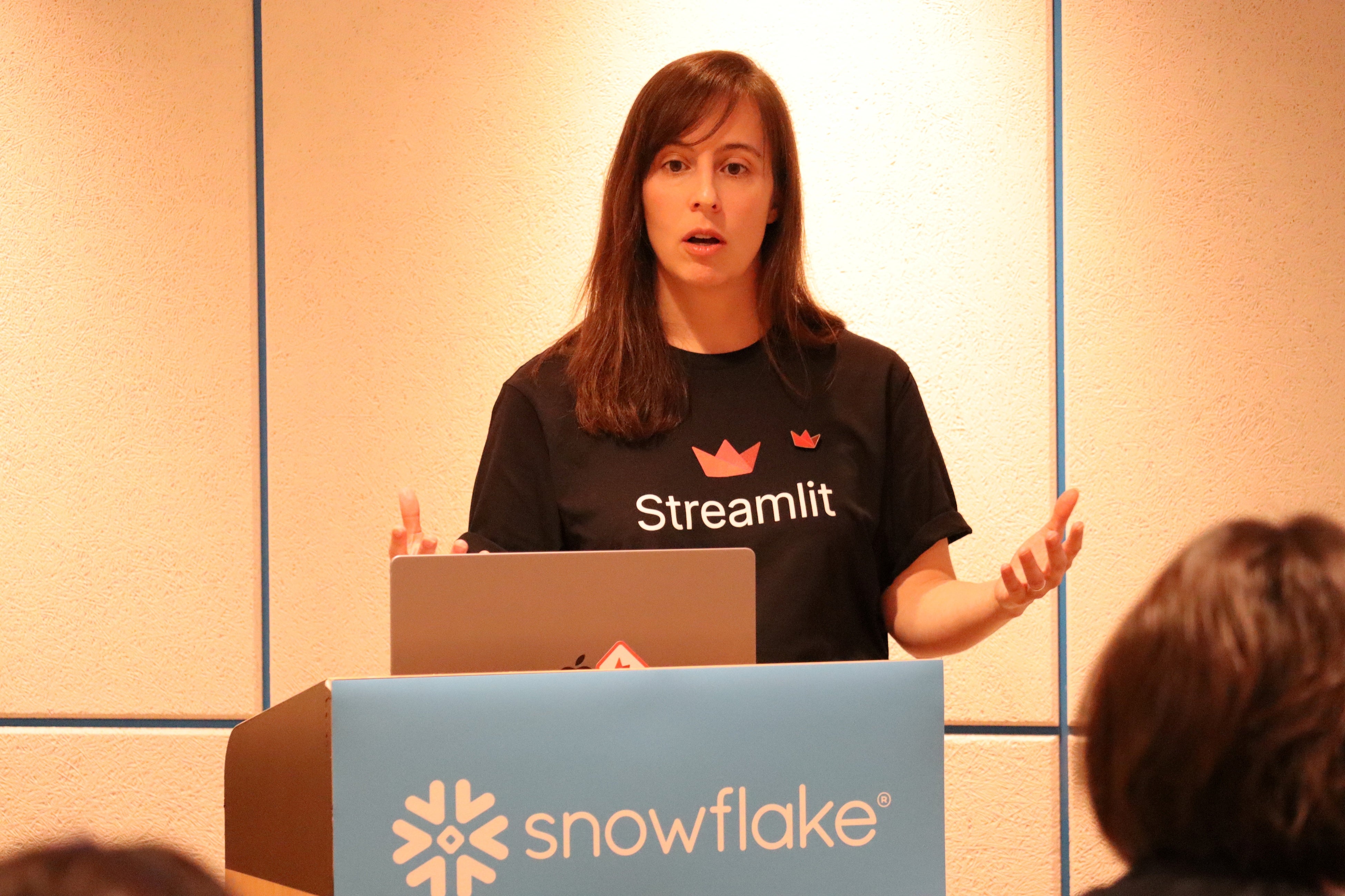 冒頭Amandaは、当時勤めたGoogle XのプロジェクトをきっかけとするStreamlitの創業経緯を話しました。買収については2022年にSnowflake側からアプローチを受けたことを明かし、「Streamlitのユーザーにとって日常業務の9割の課題はデータ。Snowflakeは最善のデータプラットフォームだった」と振り返りました。