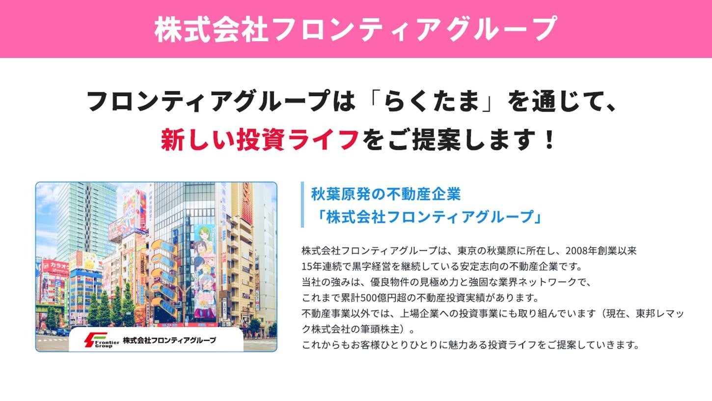 らくたま1号では、応募超過となったため、多くの方に出資機会をご提供できなかったことを踏まえ、フロンティアグループでは、早急にファンドの追加組成を決定いたしました。
