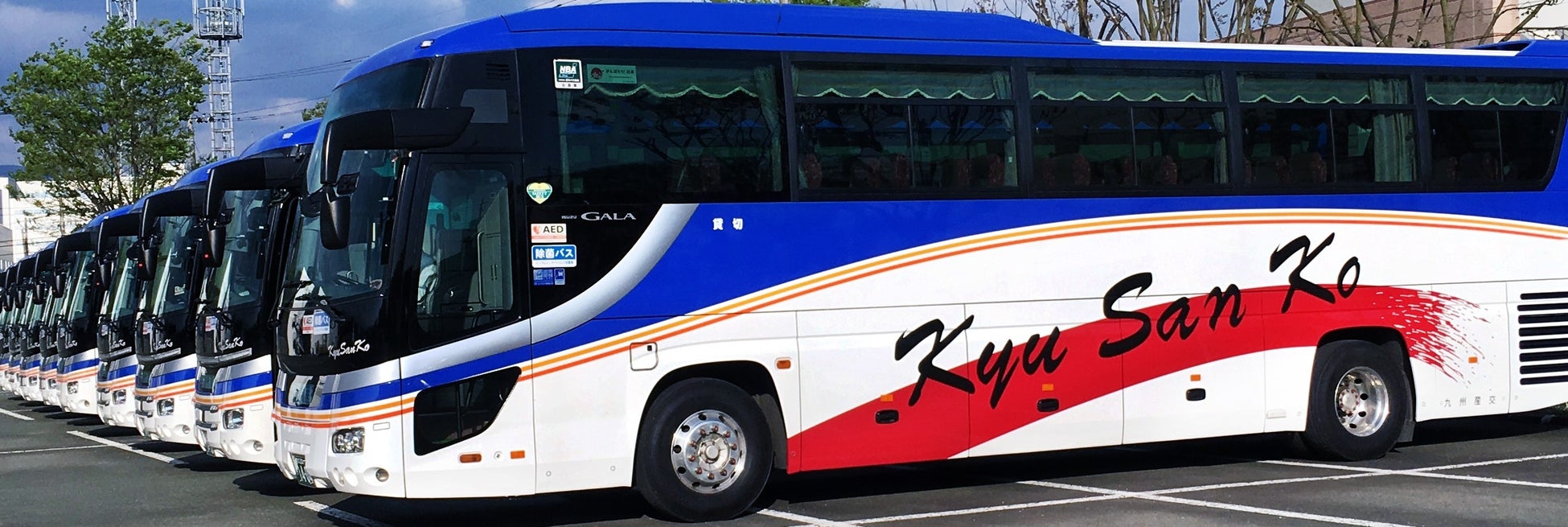 九州産交バス㈱の貸切バスは「火の国」をモチーフしたカラーリングで九州でも有数な台数を保有しています。