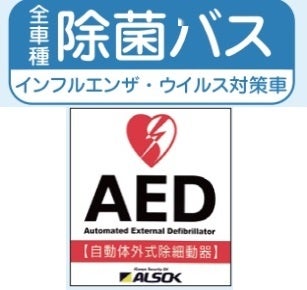 また、弊社の貸切バスは、日本で初めて保有貸切バス全社に除菌効果機能を搭載した「全車種除菌バス」により、いつも快適な車内でお過ごしいただけます。さらに、全車「AED(自動対外式除細動器)」を搭載しており、貸切バス運行に携わる全スタッフがAEDの取り扱いについて講習を受けています。