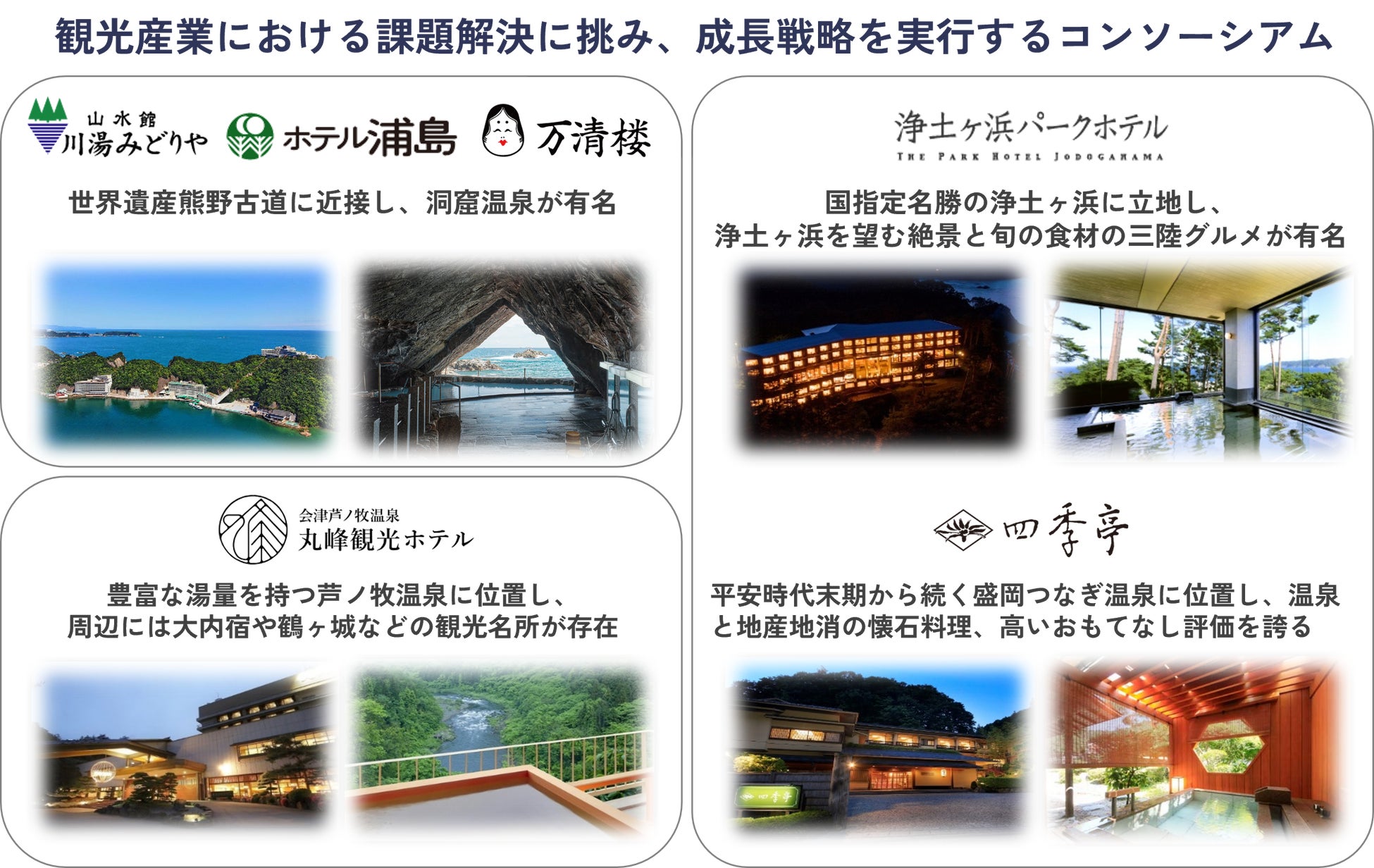 株式会社日本共創プラットフォーム(本社:東京都千代田区、代表取締役社長:冨山和彦、以下「JPiX」)は、浦島観光ホテル株式会社を幹事企業とし、株式会社みちのりホテルズ、株式会社丸峰観光ホテルを共同申請者として形成する「日本の地域観光を担うホテル・旅館の高付加価値化コンソーシアム事業(以下、「本コンソーシアム」)」が、経済産業省の「中堅・中小企業の賃上げに向けた省力化等の大規模成長投資補助金」2次公募に採択されたことをお知らせいたします。