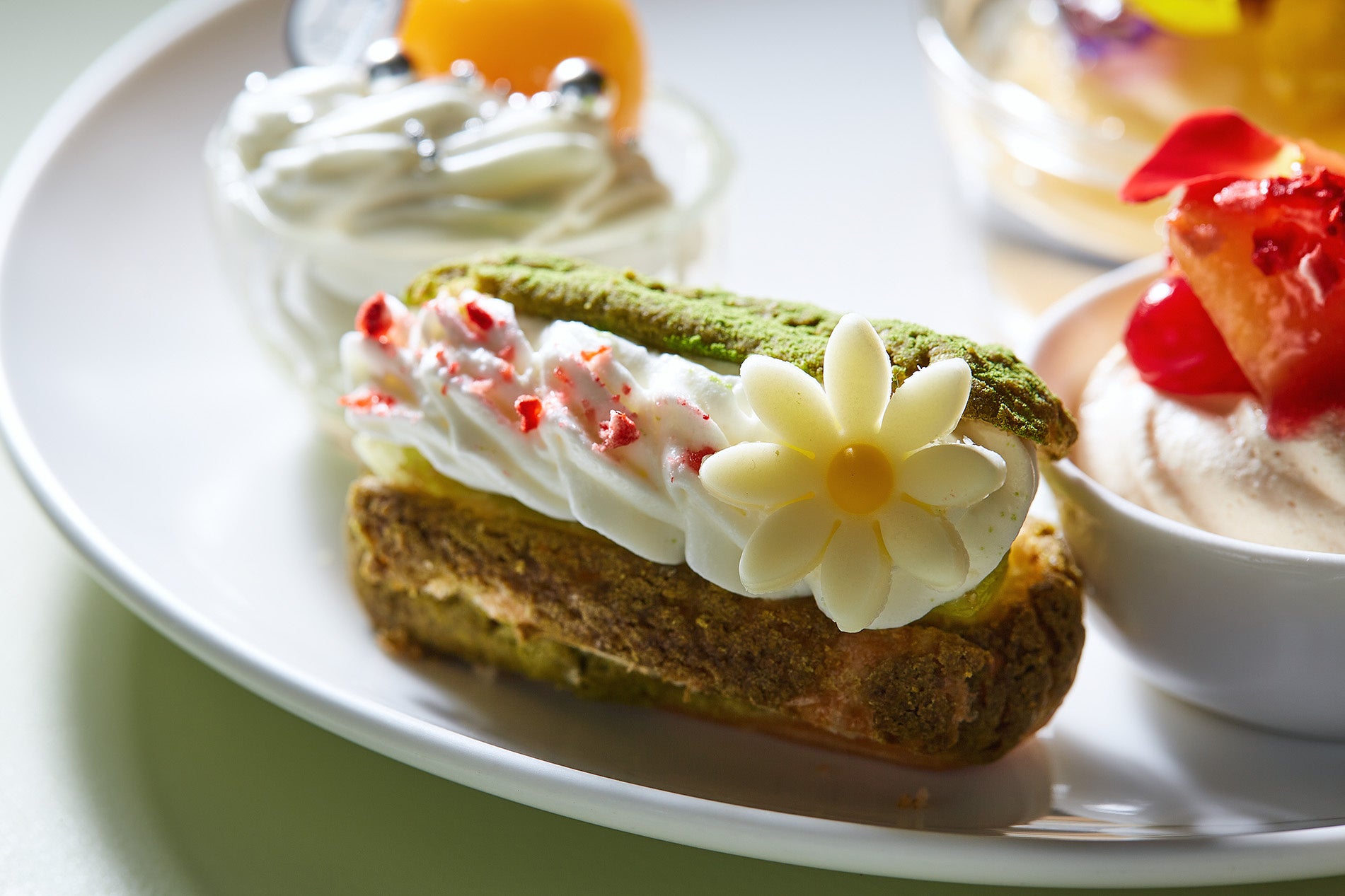 フランボワーズジャムの酸味とメロンの瑞々しい甘さを閉じ込めた、贅沢な果実感たっぷりのエクレア。