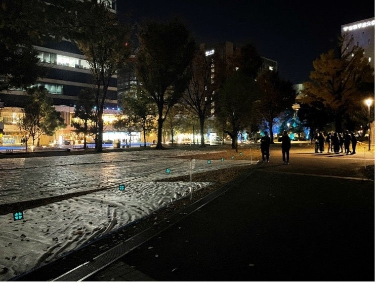 夜の公園で安全と芝生保護を両立――高輝度蓄光技術によるデザインツールで立ち入り・転倒防止実験を開始