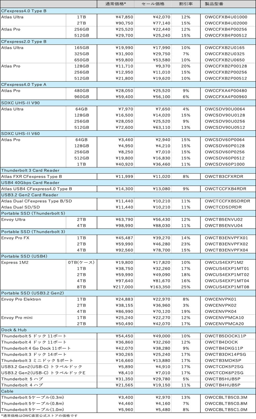 Other World Computing, Inc.(OWC®️: 米国イリノイ州ウッドストック)は、Amazon.co.jpで8月29日(金)9:00から9月4日(木)23:59に開催されるAmazonスマイルSALEに参加します。またスマイルSALE終了後の9月5日(金)から9月11日(木)の後続セールにも引き続き参加します。期間中のセール対象製品ならびにセール価格の詳細は価格表を参照ください。セール価格での販売は在庫がなくなり次第終了となります。