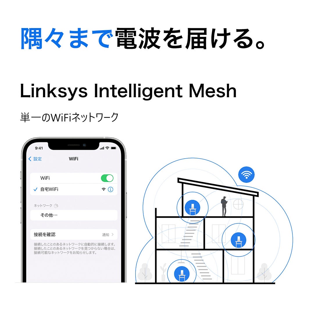 Linksysは、信頼性とセキュリティ性に優れたネットワークおよびメッシュテクノロジーにより、卓越したWiFiエクスペリエンスを提供しています。とりわけ、当社の製品は有効性に優れています。どこでどんな状況で利用しても、LinksysのWiFiには無駄な複雑さが一切ないので、誰でも簡単に、お気に入り動画のストリーミング視聴を楽しんだり、インターネット上で副業を立ち上げたり、人生の大切な一瞬に心を通わせ合ったりできるのです。当社は1988年の創業以来、業界をリードするネットワーク機器のブランドとして、WiFi製品の提供によってお客様の暮らしや活動を支えています。弊社におきましても、警視庁発表の「家庭用ルーターの不正利用に関する注意喚起」の取り組みに賛同するとともに、注意喚起を行ってまいります。