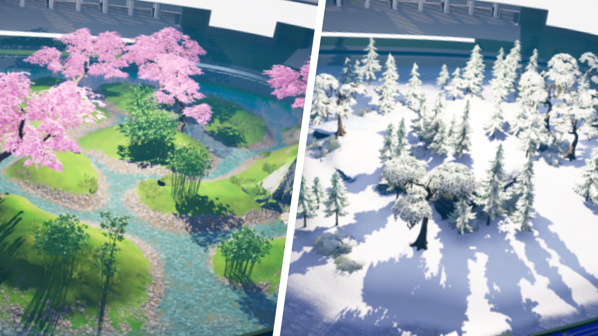 雪原:フォートナイト内の東京ドームでは一年中雪を楽しめます、雪だるまに気を取られても敵に背後は取られないよう気をつけましょう!