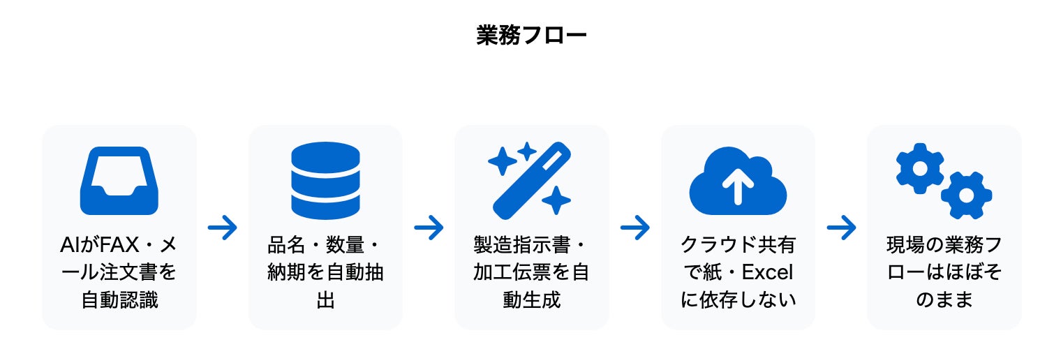 FAX・メール受注から製造指示書作成までをAIが自動化。多品種・小ロット・短納期対応の現場で“紙とExcel依存”からの脱却を実現
