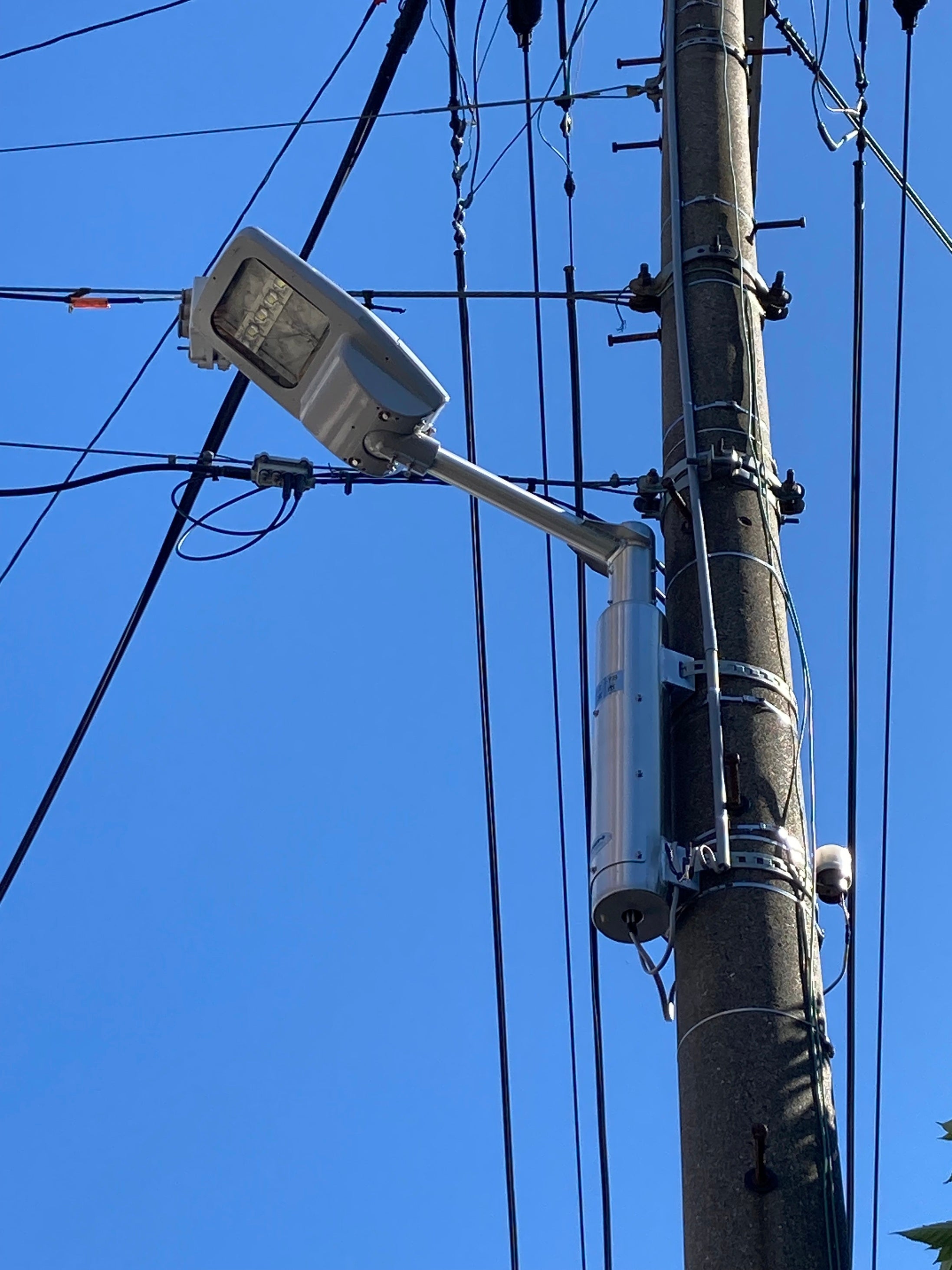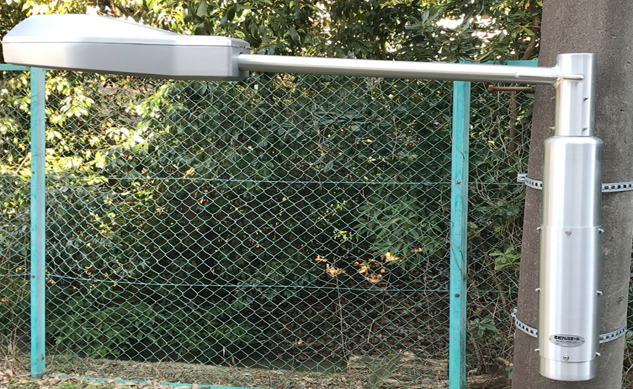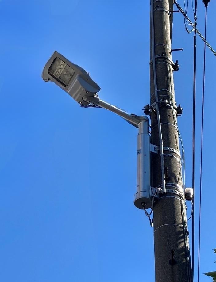 共架式照明柱とは、狭小歩車道において照明柱を単独で建てることが出来ない場合の処置として、コンクリート電線柱への共架形式が採用され「夜間の安全性向上や防犯手段等、市民の生活を支える手段として全国で多く採用されています。」