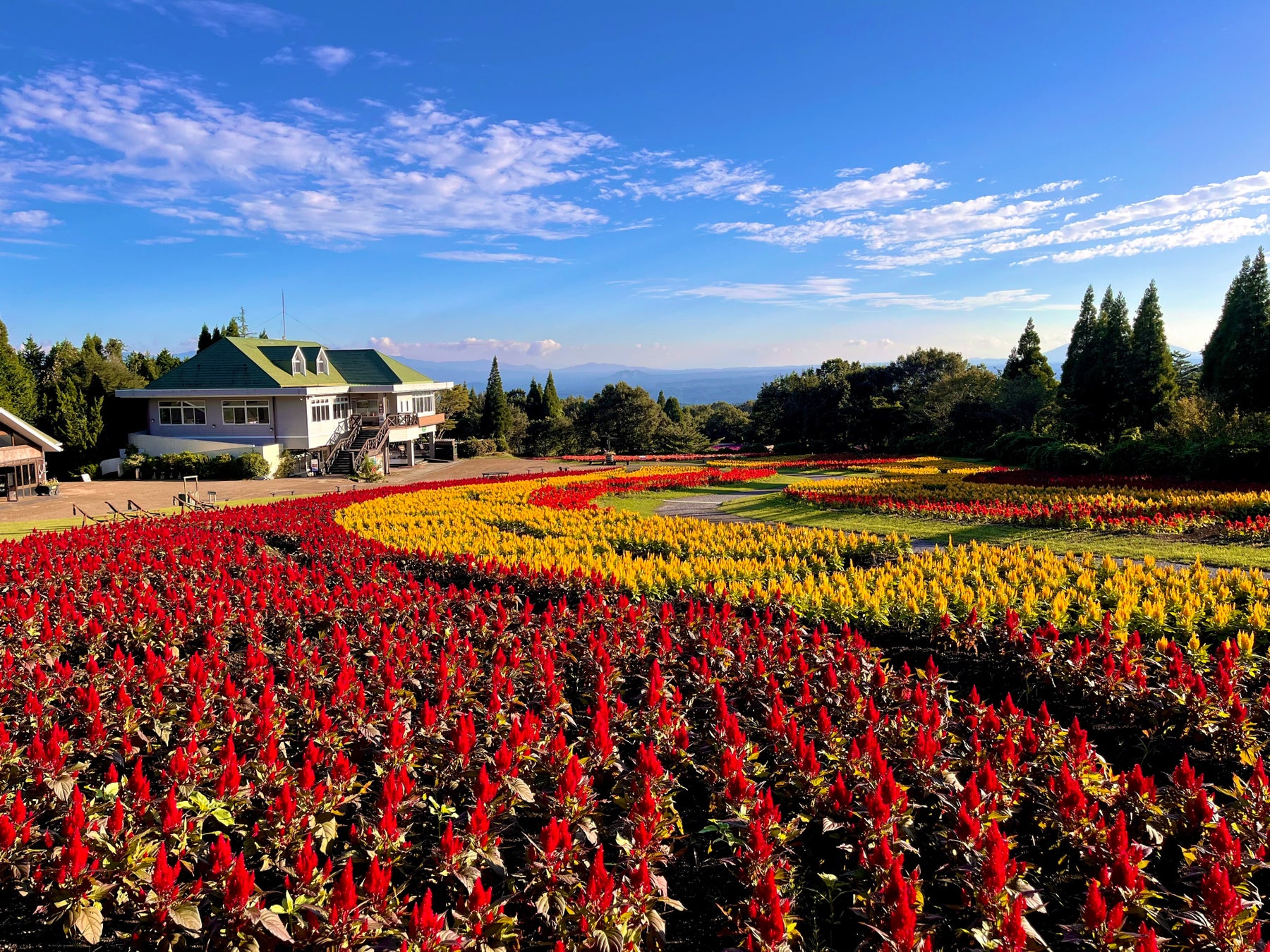 九州最大規模のケイトウ畑「ブライトスパークス」が高原を染上げる