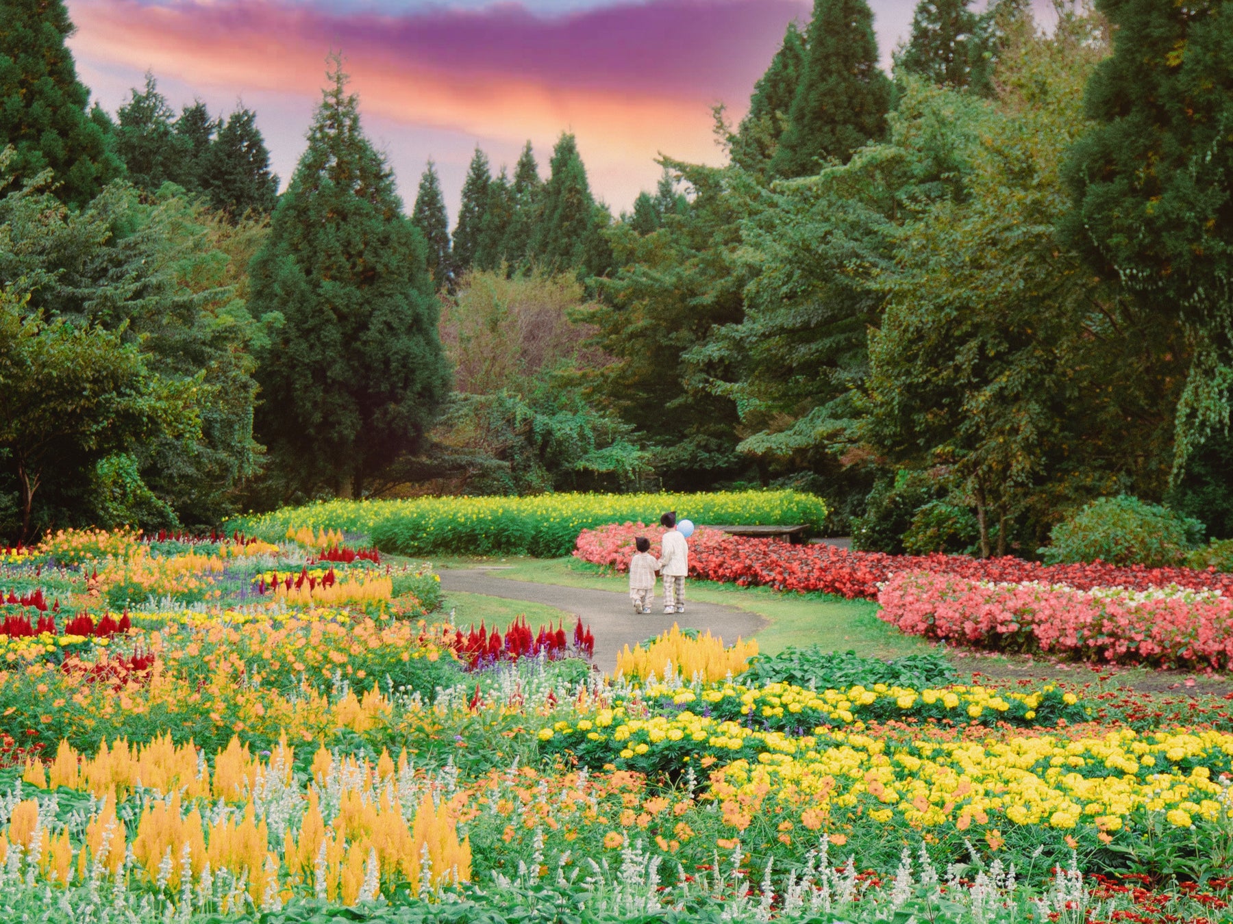 期間中は、園内がマリーゴールド(6万株)、ケイトウ(7万株)、コキア、サルビア、ベゴニア、千日紅など秋を象徴する花々で埋め尽くされ、視界いっぱいに広がる花景色が来園者を包み込みます。