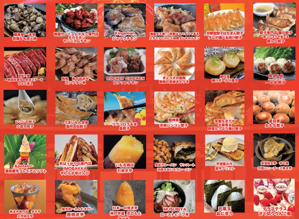 遠州浜松餃子・宇都宮餃子・宮崎餃子・佐賀牛の赤身ステーキ・2年連続日本一の焼き芋屋「志のもと」、蜜芋ブリュレなど全部で30店舗が平城宮跡歴史公園に大集結!!