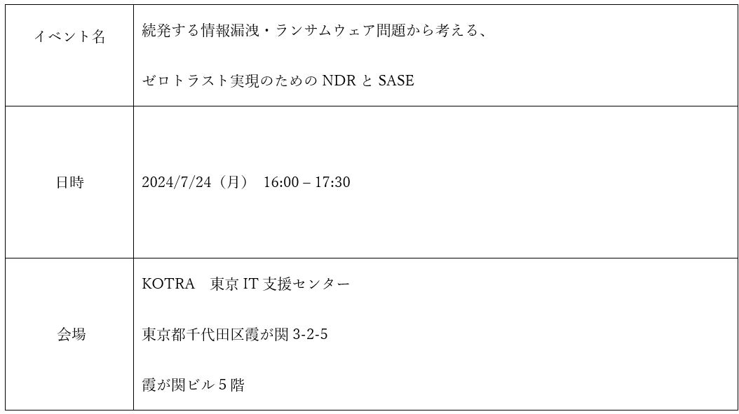 株式会社クワッドマイナージャパンは、7月24日(水)に、『続発する情報漏洩・ランサムウェア問題から考える、ゼロトラスト実現のためのNDRとSASE』をテーマにした無料セミナーを開催いたします。