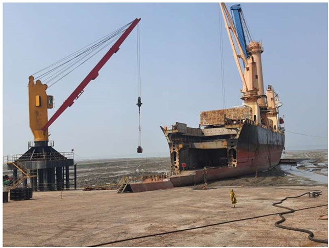 本年3月にバングラデシュのPHP Ship Recycling Facility (以下「PHP ヤード」)に入渠した当社グループのNYKバルク・プロジェクト株式会社が所有する重量物船「KAMO」(以下、「本船」)は、6月に無事解撤(かいてつ)を完了しました。同国内でシップリサイクル条約(注1)の基準を満たしたヤードでの解撤は、日本の海運会社としては初めてです(当社調べ※)。