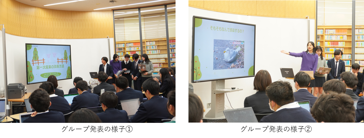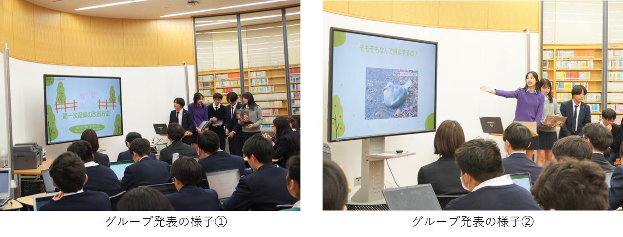各グループが畜水産業の課題分析とその解決に貢献するアイディアを発表しました。生徒ならではの斬新なアイディアがたくさん挙げられ、学びに溢れる発表会となりました。