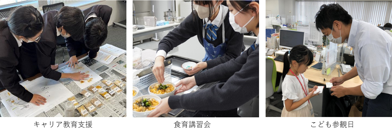 親の働く姿や会社について知ることで、“働くこと”に対して興味を持つきっかけにして欲しいという思いから、従業員のこども達を事務所や工場などの職場へ招く「こども参観日」を行っています。配合飼料についての勉強会や食育講習会を一緒に行うことで、従業員のご家族にフィード・ワンへの理解をより深めていただき、家庭でのコミュニケーションが増えることも期待しています。