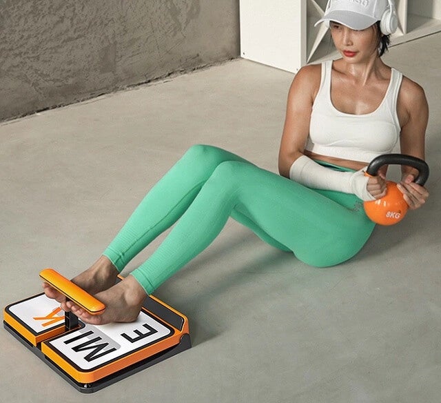 金属製のフットボードを引き上げて足を固定すれば、サポートいらずでスムーズに腹筋運動ができます。