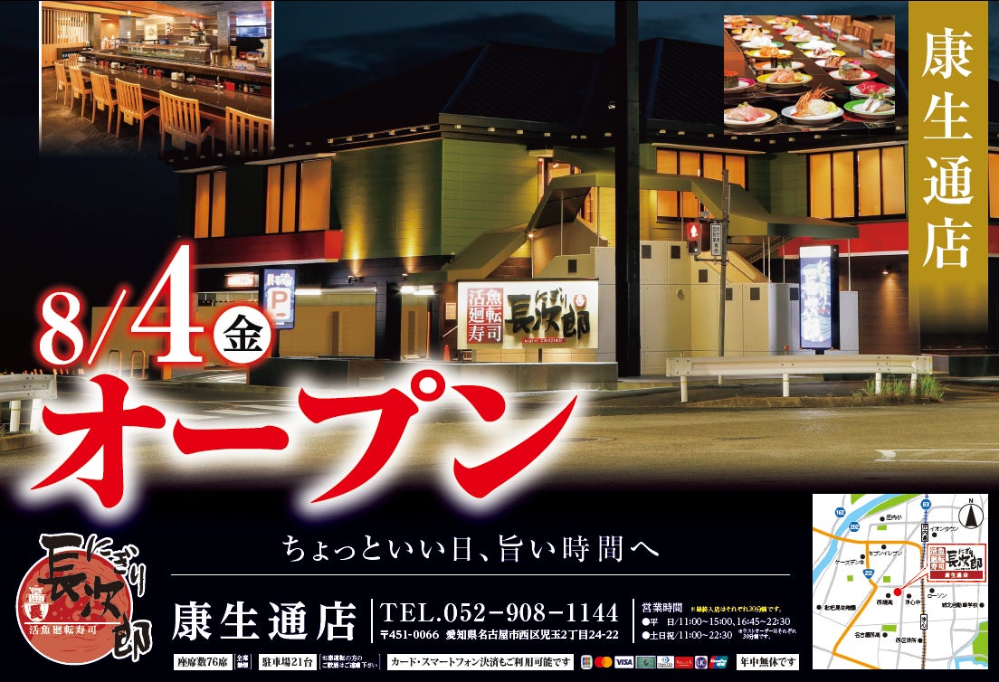 【にぎり長次郎】にぎり長次郎康生通店 8/4(金)オープン!