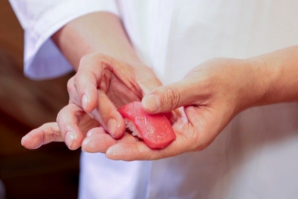 ・板前による確かな技術 :店内中央で、板前がお寿司をにぎります