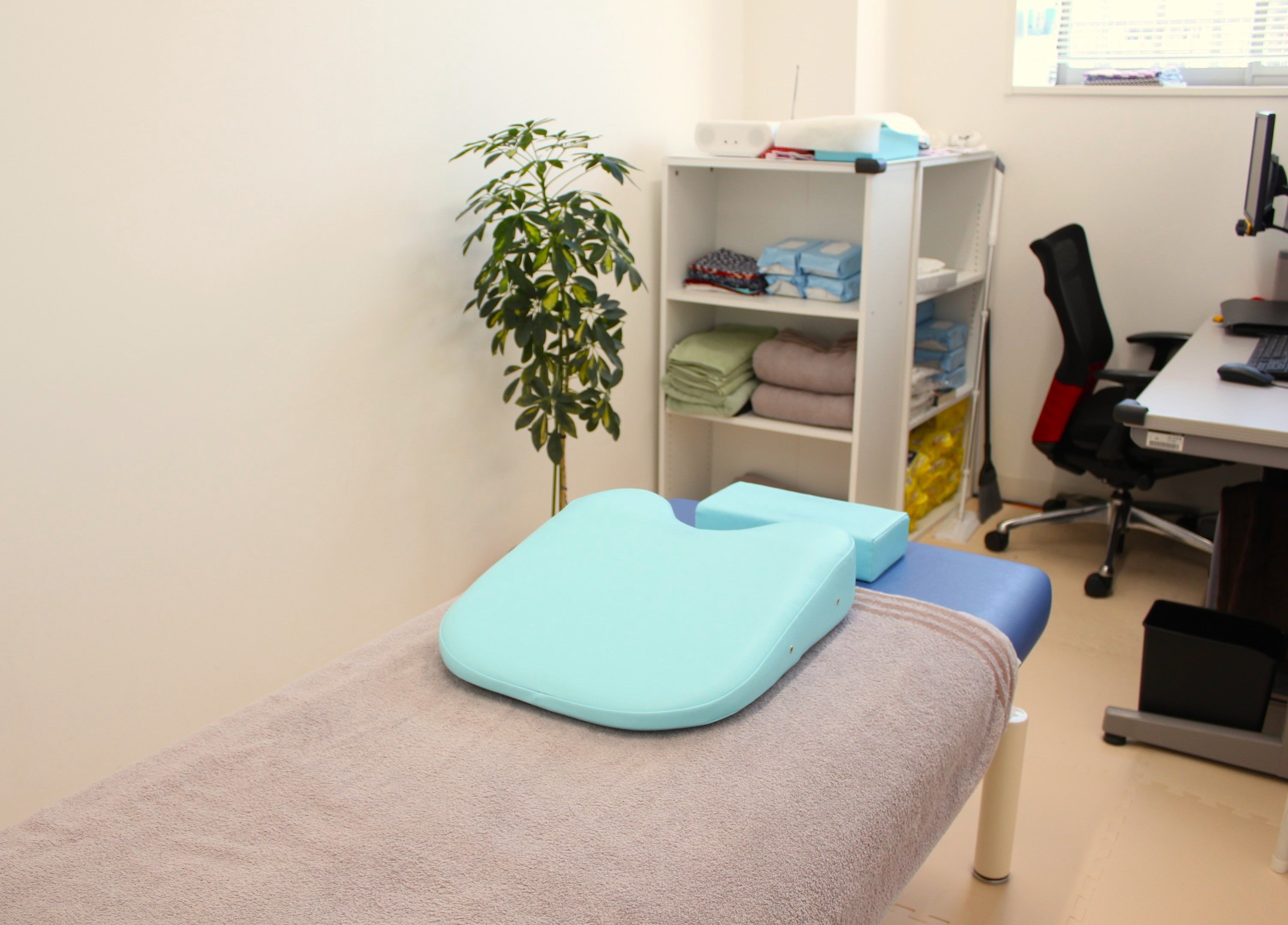 空間情報事業本部の本社(埼玉県川越市)にマッサージ室を設置し、国家資格「あん摩マッサージ指圧師」を保有する視覚に障がいのある社員が、エアロトヨタの従業員を対象に施術を行います。