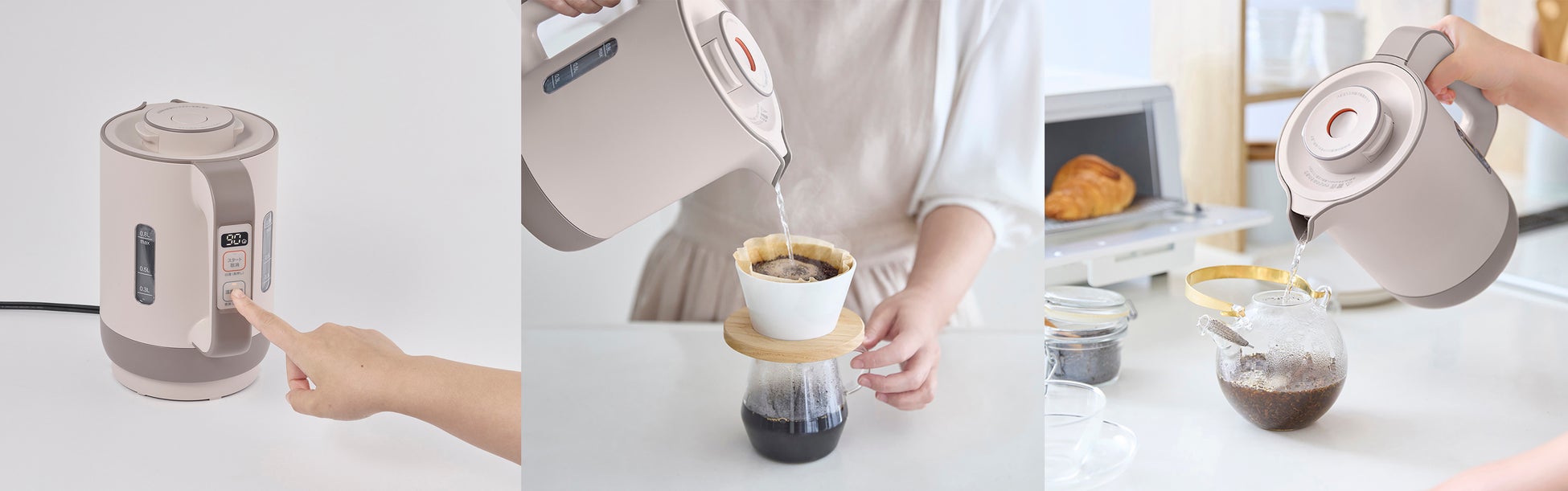 近年、健康・美容・温活のために、毎朝、白湯を飲む事を習慣化している方が増えております。その中で、忙しい朝の時間を有効活用できるよう、「起床後に飲みごろの白湯がすぐに飲める」を実現するケトルをコンセプトに企画・開発いたしました。