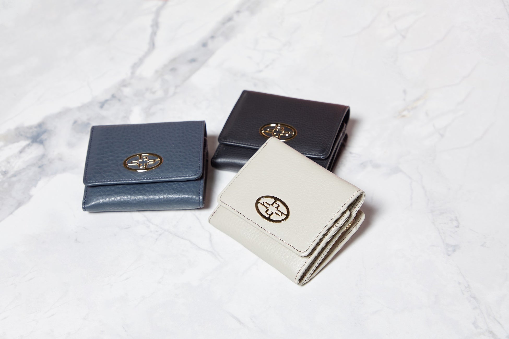 フィオーレミニウォレット 左:ネイビー 中央:ブラック 右:グレージュ 各25,300円(税込)