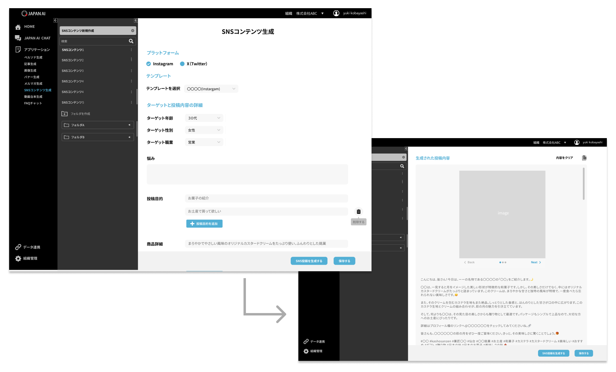 ・文章生成や画像のはめ込みまでAIがニーズに合わせた構成で生成
