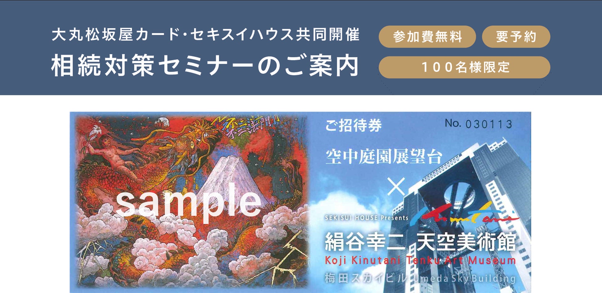大丸松坂屋カード/積水ハウス共同開催 ご自身とご家族のための、これからの相続対策を考える 参加費無料・100名様限定 相続対策セミナーのご案内