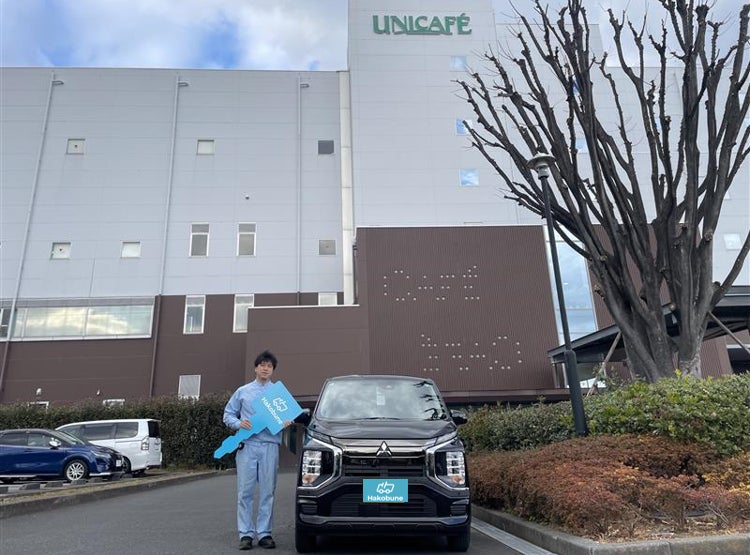 Hakobuneは、ユニカフェの神奈川総合工場(住所:神奈川県愛甲郡愛川町中津字桜台4026-9)にEV充電器10基の設置を支援し、三菱eKクロスEVを納車しました。神奈川県の事業所に通勤用途の電気自動車が導入されるのは、今回が初めてとなります。