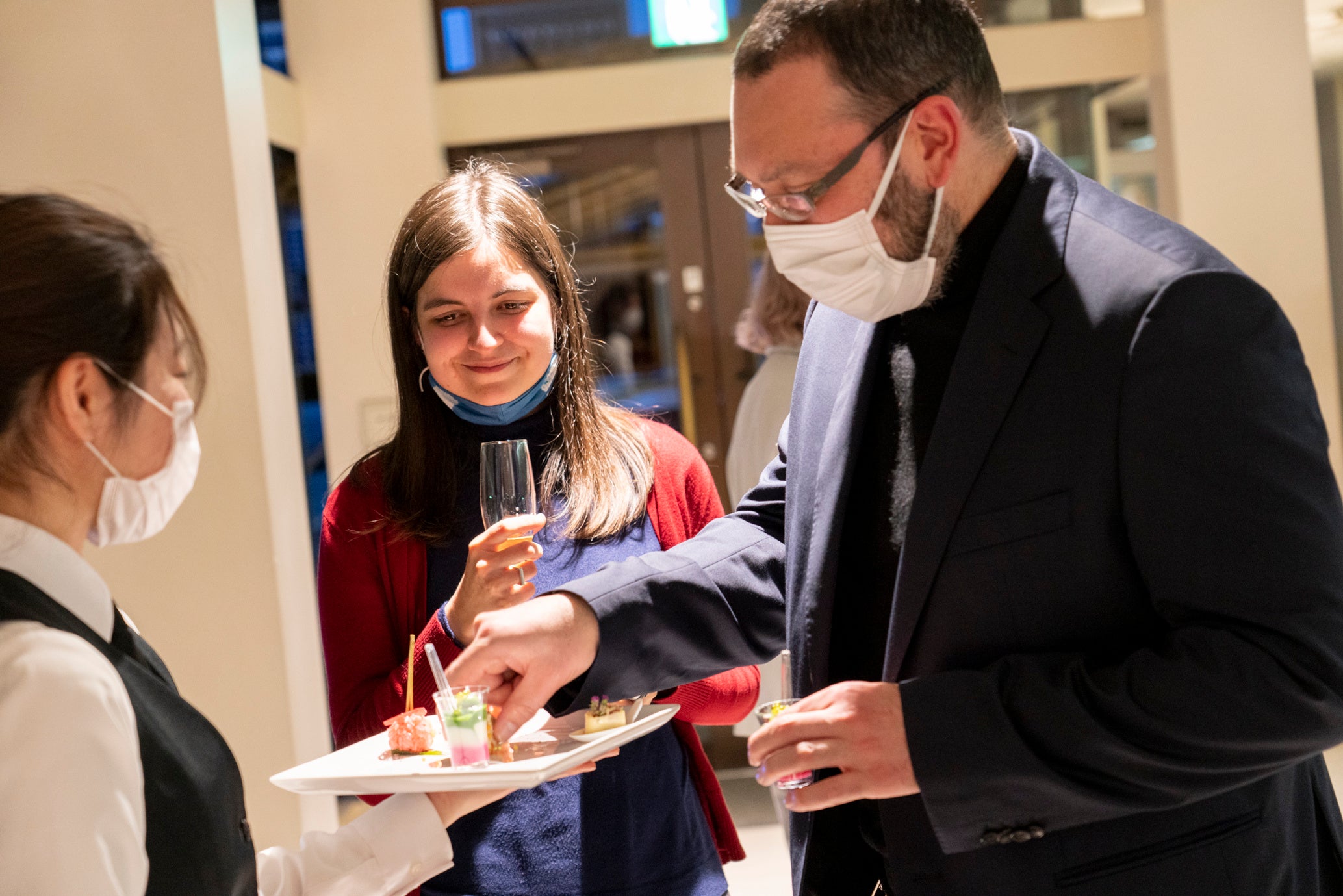 美術館敷地内の日本料理店『宝善亭』が、本格会席料理をフィンガースタイルにアレンジ。展覧会にちなんだ特別メニューと料理に合わせたお酒を、ゆったりとお楽しみいただけます。