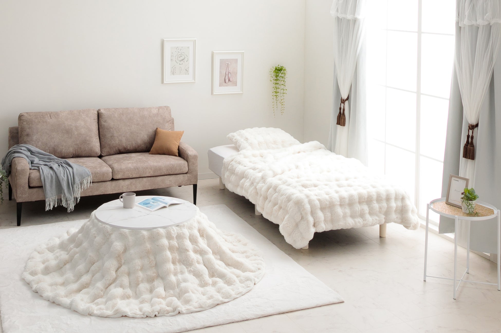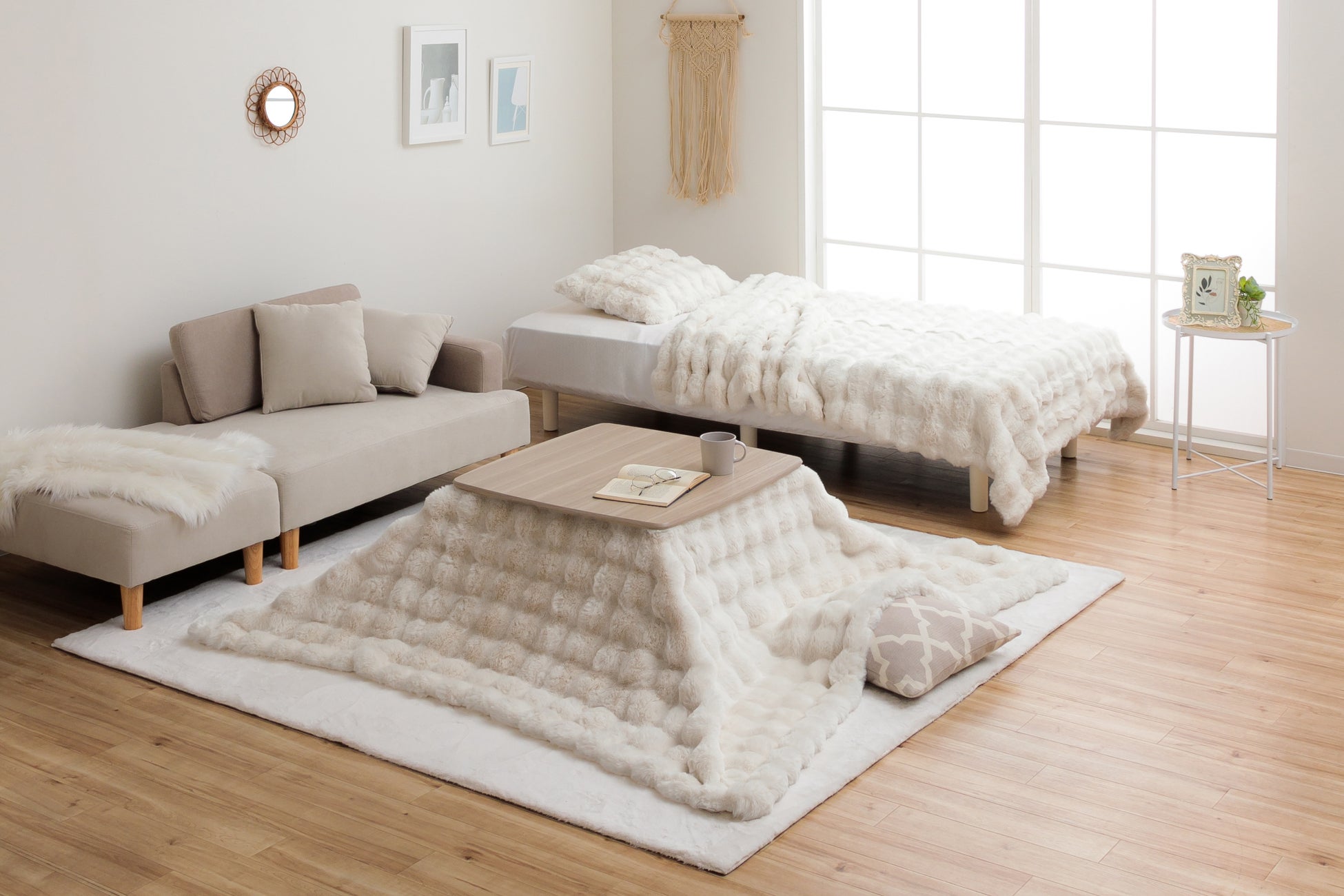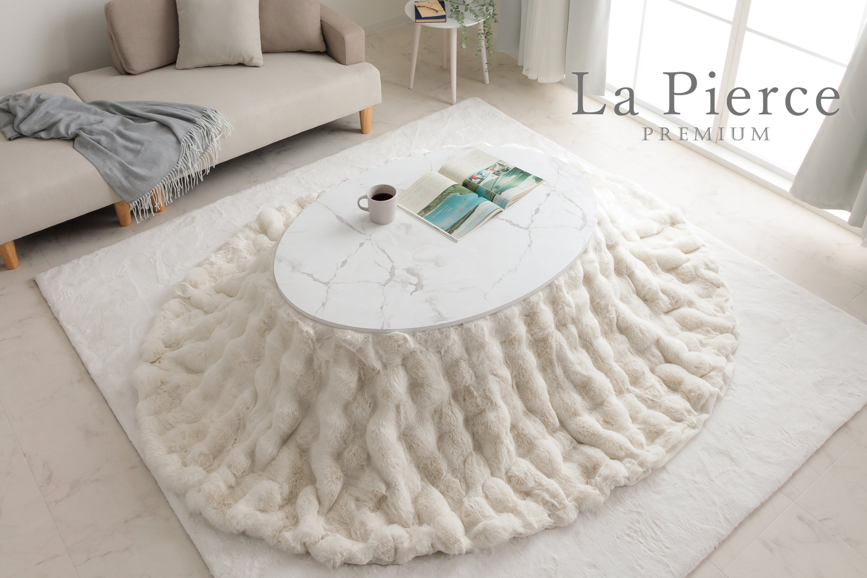 「La Pierce(ラピアス)」シリーズは、“大人かわいい海外風インテリア”をコンセプトに生みだされたシリーズです。トレンドを反映した韓国インテリアやシャビーシックなインテリアを好む方々に向け、大人のかわいさを表現。見た目と使い心地のやさしさを兼ね備えたモノづくりを追求しました。こたつ、ラグ、寝具など、生活空間全体をトータルコーディネートできる豊富なラインナップ。かわいく仕上げたお部屋を誰かに見せたくなる、“女性の心をくすぐる”アイテムを揃えています。
