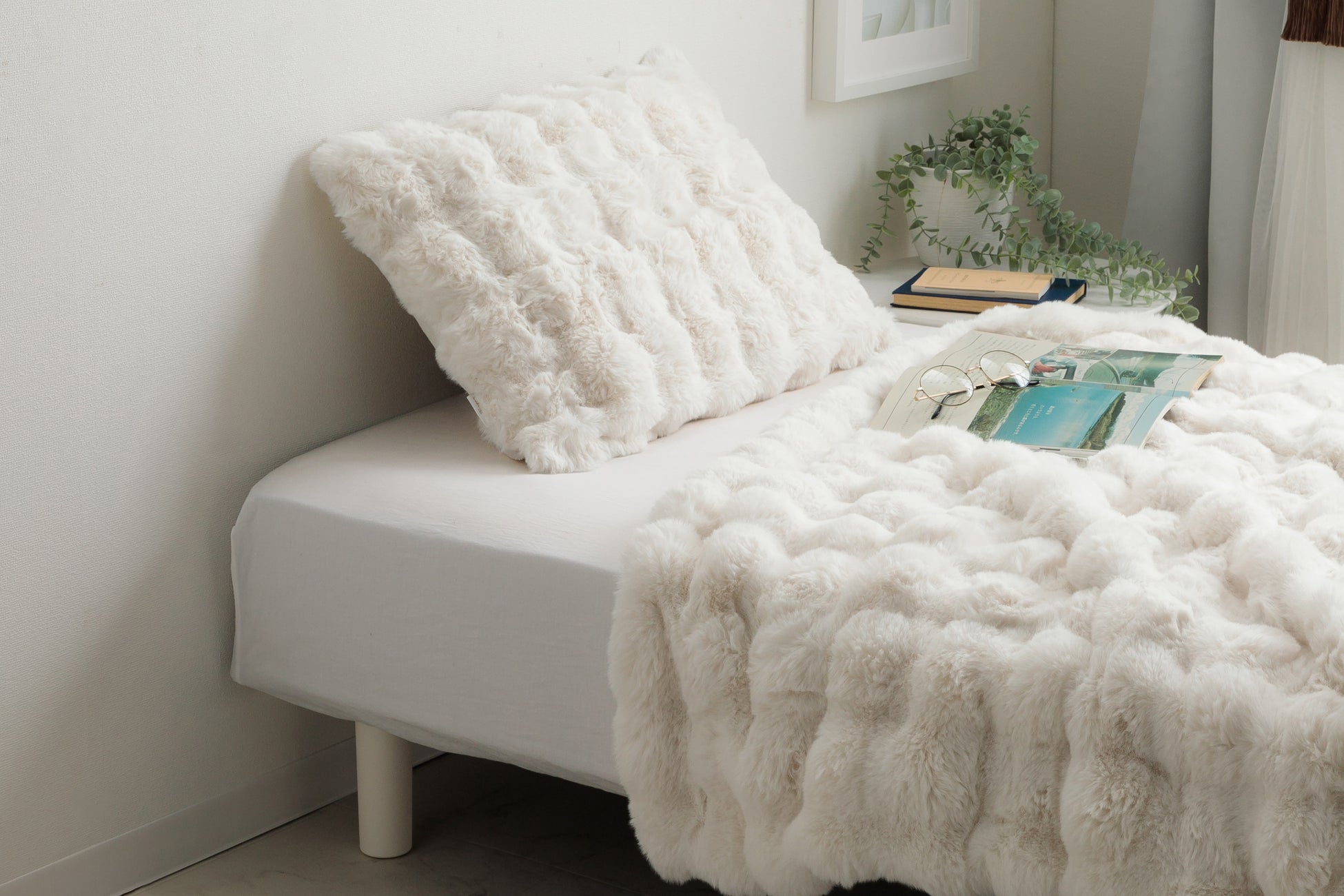 プレミアムな触り心地に包まれて眠る2枚合わせの毛布。ずっと触れていたくなるラビットファー調生地とたっぷりとしたボリュームで体にほどよくフィット。ふわふわに包み込まれて睡眠の質もあがりそうです。