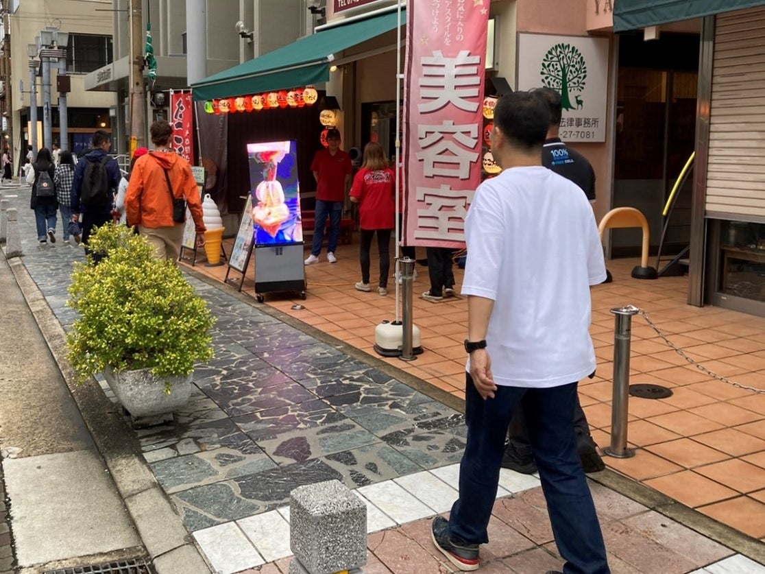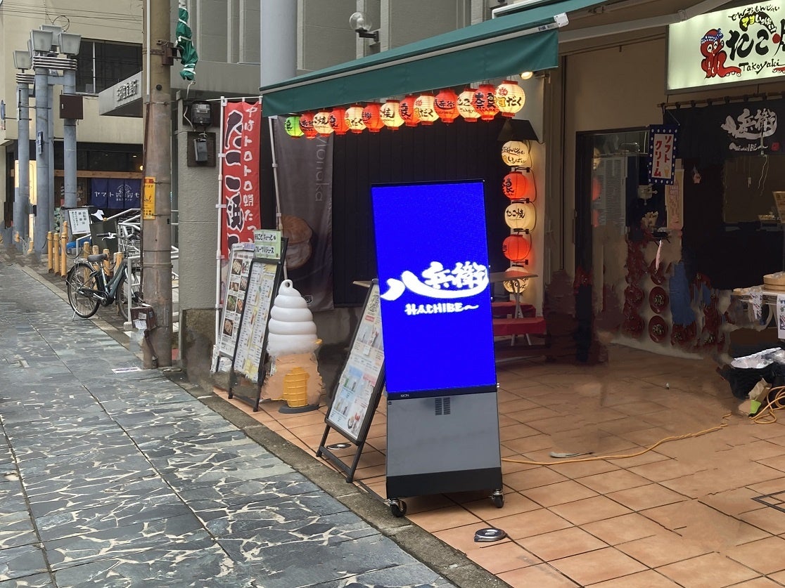 導入先は「たこ焼き八兵衛(奈良公園奈良三条通店)」で、国内外からの多くの観光客で賑わう奈良の中心市街地(JR奈良駅から奈良公園・春日大社に向かう三条通り沿い)の店前で通行人に対する認知と集客を目的としてご導入いただきました。
