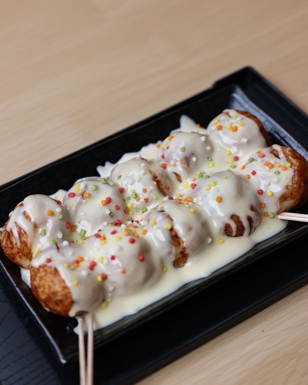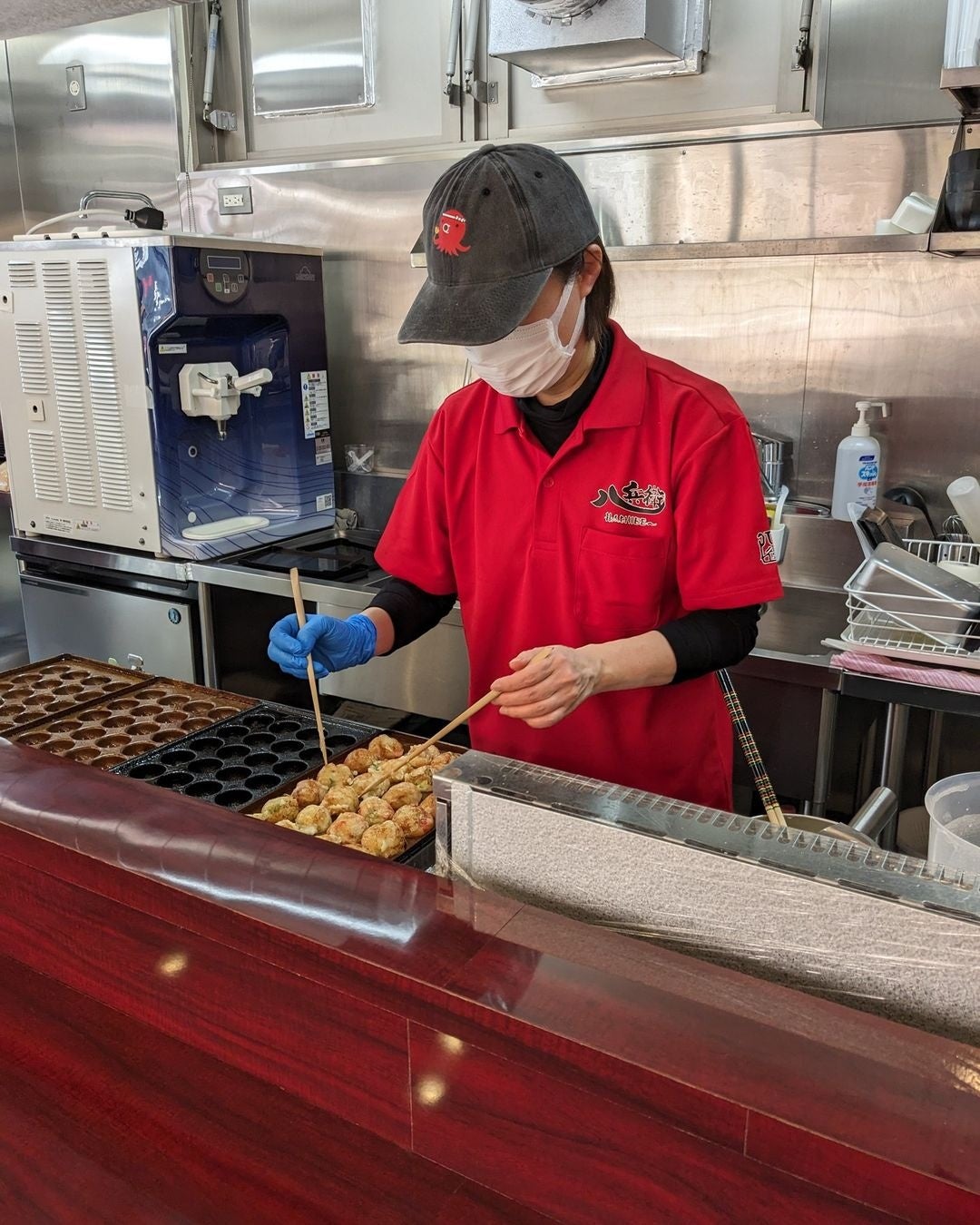 生地は新鮮なたこの風味が口いっぱいに広がるように小麦粉の配合や出汁の分量を黄金比で配合。外はカリッと、中は口の中でとろけるような焼き具合に仕上げた自慢のたこ焼きとなっています。