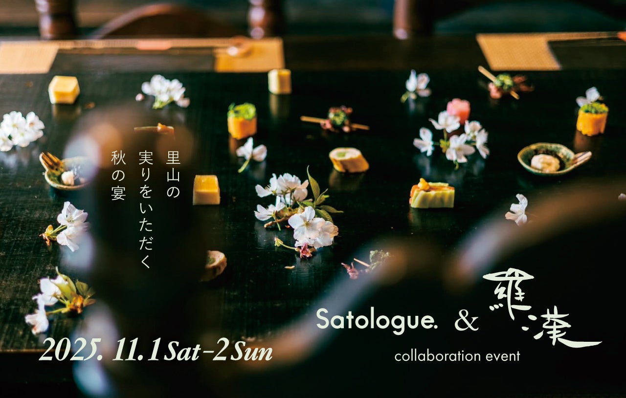 沿線全体をホテルに見立てる地域活性化プロジェクト「沿線まるごとホテル」に取り組む「沿線まるごと株式会社」(本社:東京都西多摩郡奥多摩町、代表取締役:嶋田 俊平、以下:沿線まるごと社)は、プロジェクトの中核施設「Satologue」にて、奥多摩の秋のベストシーズンに「里山 秋の宴」と称し、伊豆の有名店「羅漢」とコラボした特別なランチ&ディナーのご提供と、遠州流茶道家・堀内宗長氏が点てる本格的な茶会を体験できる2つのイベントを開催します。