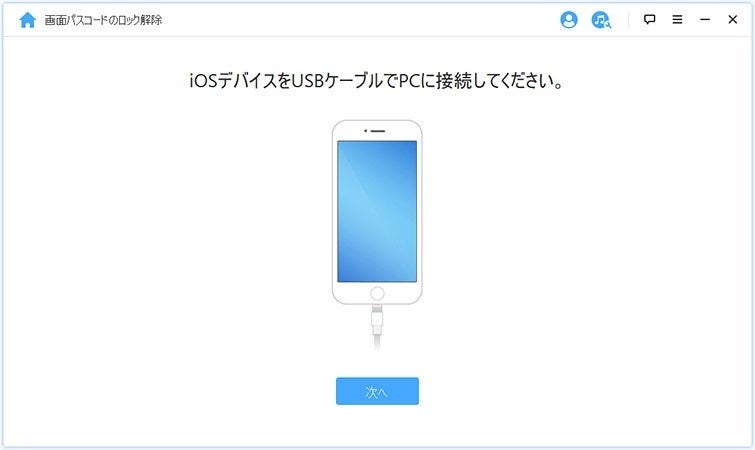 Step 1.まずは、ソフトを立ち上げます。ホーム画面で「iOSデバイスの画面ロックを解除」を選択してください。