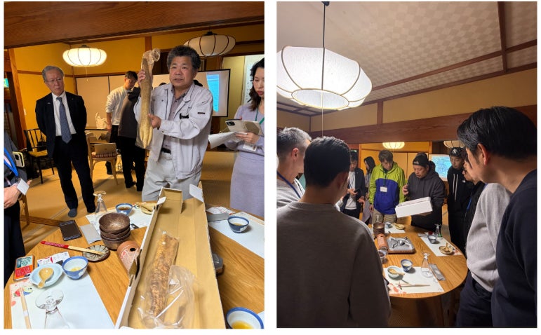 本ツアーは、若狭ふぐ、自然薯、へしこ、ジビエなど、嶺南を代表する食材の生産現場を実際に訪ね、産地が直面する課題を共有した上で、“産地直送”にとどまらないパートナーシップ型の流通・発信のあり方を、食のプロフェッショナルとともに議論することを目的に実施したものです。 当日は、首都圏のトップシェフ5組9名、バイヤー・企業関係者12名、近畿経済産業局2名を含む計23名が参加し、3町の生産者・事業者との意見交換を行いました。