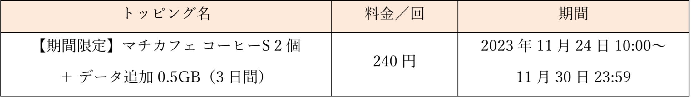 ※コーヒーとデータのセットトッピングは11月24日午前10時開始です。