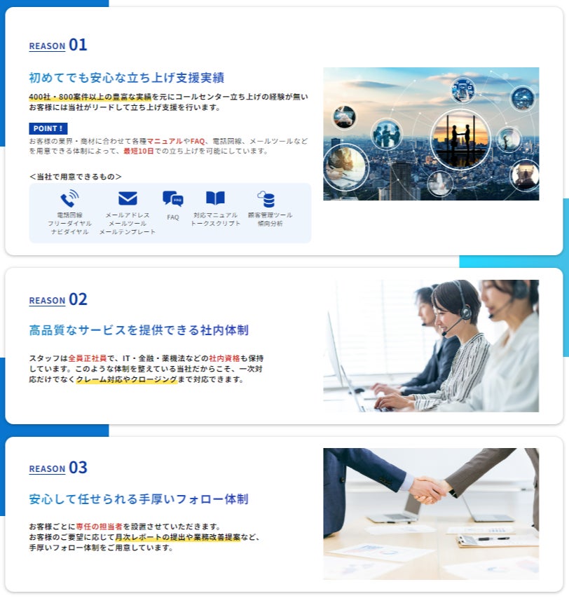 新しい事業やサービスを始めたばかりで、まだコールセンターを立ち上げたことがない方にとって、安心してサービスをご検討いただくために最も重要なのは「フォロー体制」ではないかと考えています。
