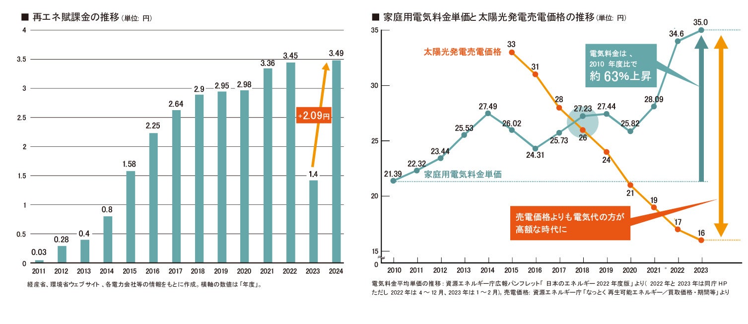 同時に、太陽光発電システムで発電した電気は、売電価格の低下が続き、2018年以降は電気代を下回っていることから、売電で収入を得るよりも自家消費で買電を節約するほうがお得な状況になっています。