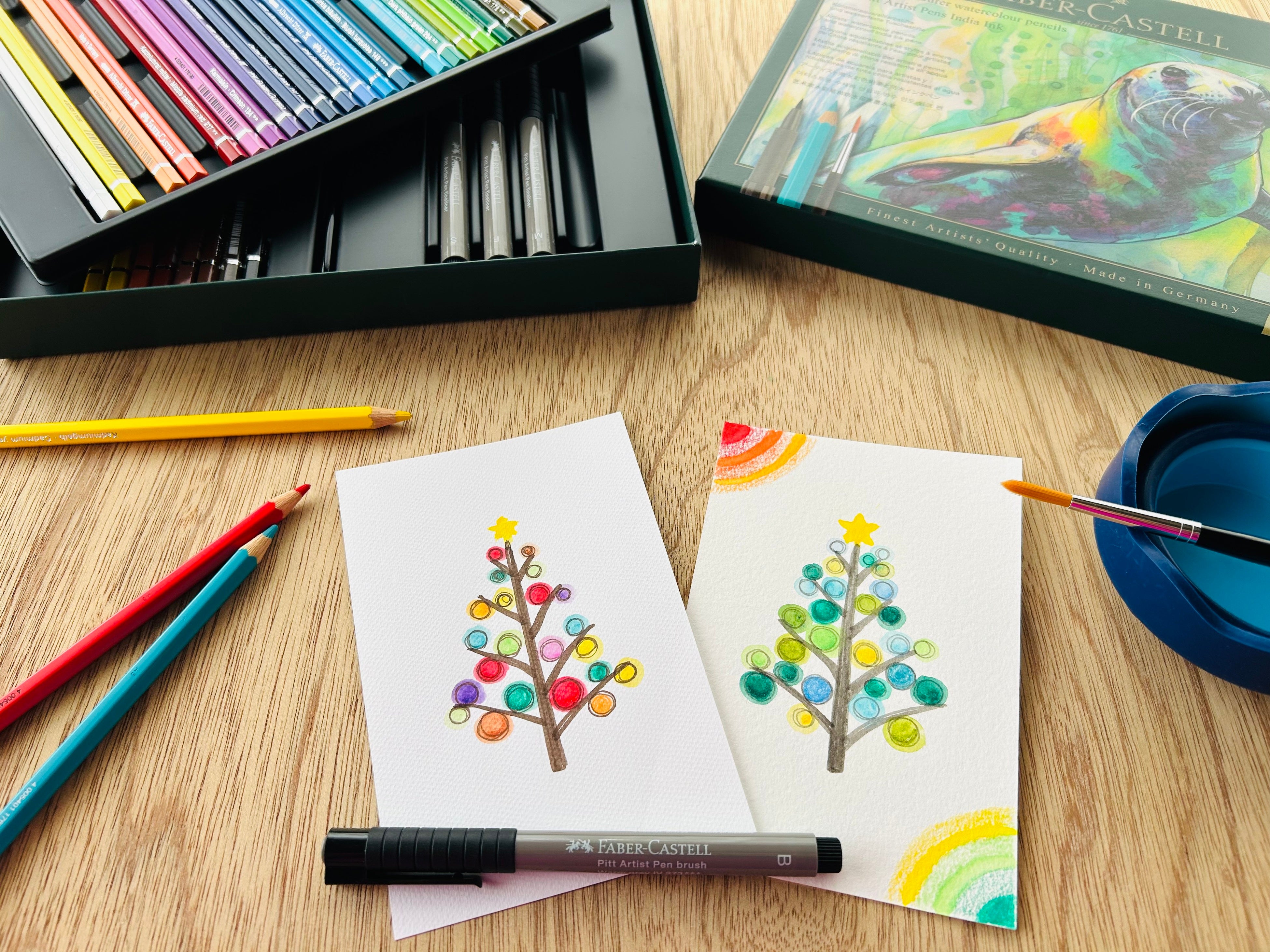 グリーティングをデジタルで済ますことが多い今の時代、ファーバーカステルの水彩色鉛筆で、ご自身で描いたハガキでグリーティングカードを出してみませんか。
