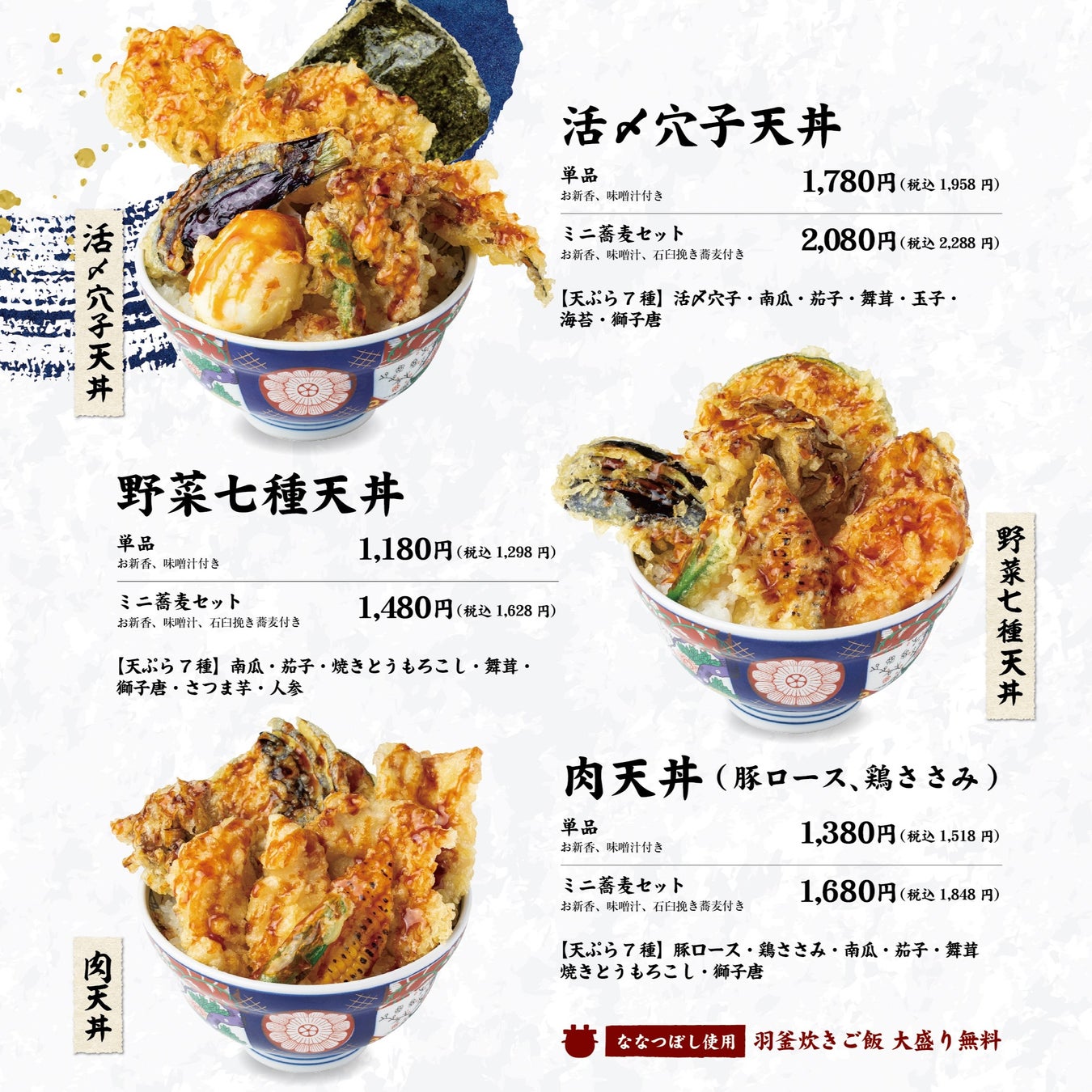 ふっくらもちもちの羽釜炊きごはんと、サクサク衣に旨みを閉じ込めた揚げたて天ぷらが美味しい新ブランド『天丼大島屋』がイオンモール浦和美園にオープン
