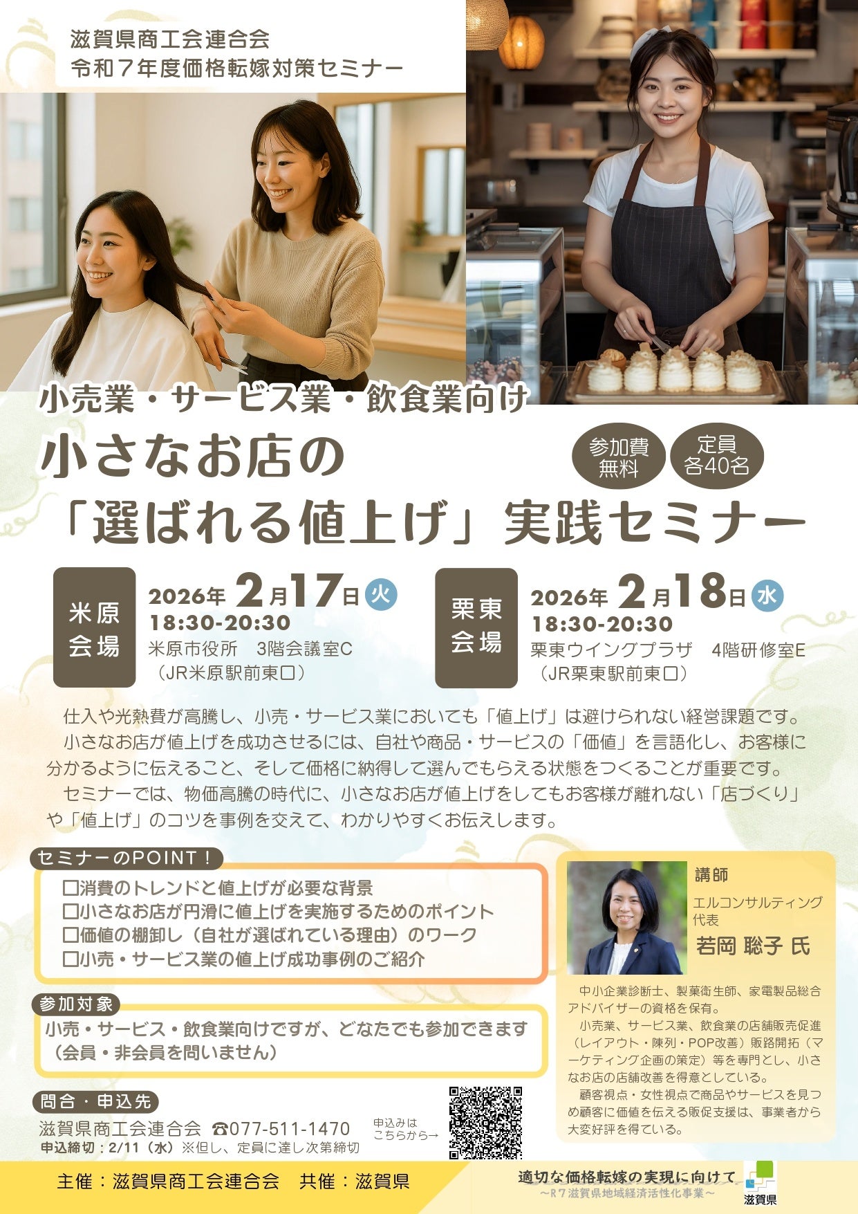 【2/17米原・2/18栗東】小売業・サービス業・飲食業向けの「価格転嫁セミナー」を開催!